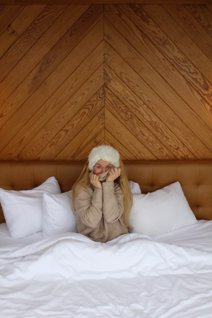 If it had been summer, utilizing their many picnic tables and grills would have been perfect, but as it was snowing pretty hard, we decided to cook in their fully-stocked kitchenette. The dome had it ALL. High ceilings and 400 sq ft of luxury. Besides our own food, we didn’t need to bring a thing. They had a pour-over coffee setup for the morning, pots and pans for cooking on a plug-in stove topper, a mini fridge and amazing water pressure in both the kitchen and bathroom. The bathroom had a two-person shower, heated floors, heated toilet seats, and the entire place was so clean. My favorite part was the plush king-sized bed front and center in the warmth of the insulated dome. After eating and playing a few games at the table, we cuddled up and watched the snow fall out the massive dome window. Talk about romantic.