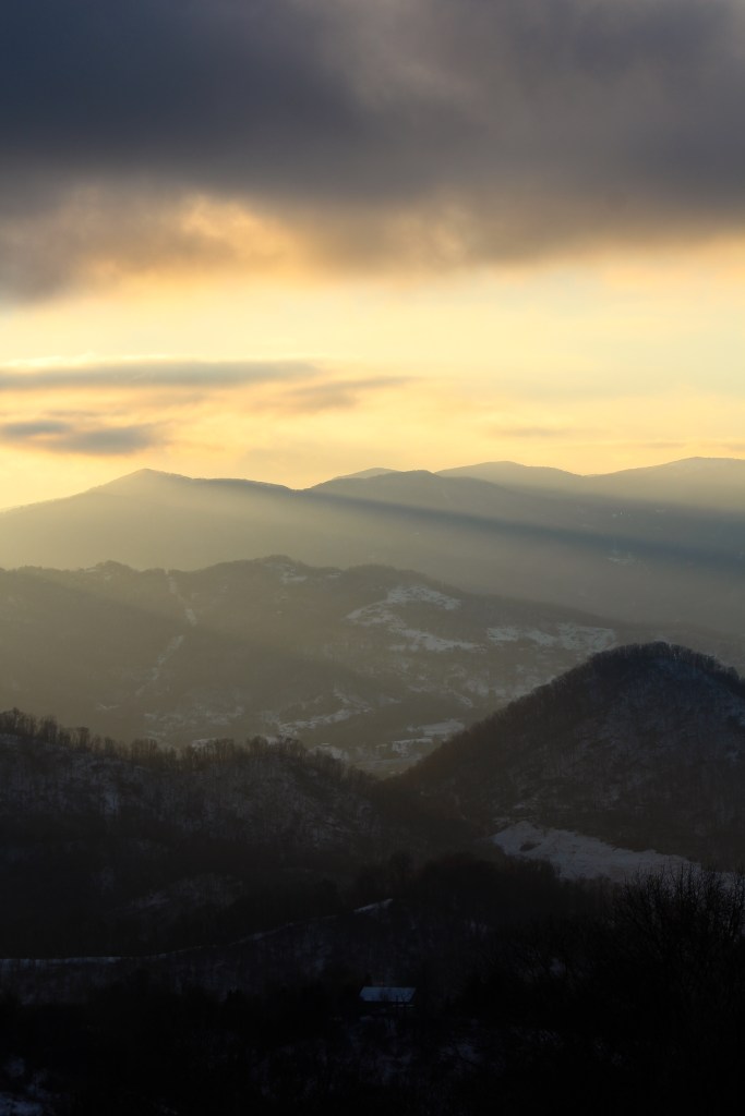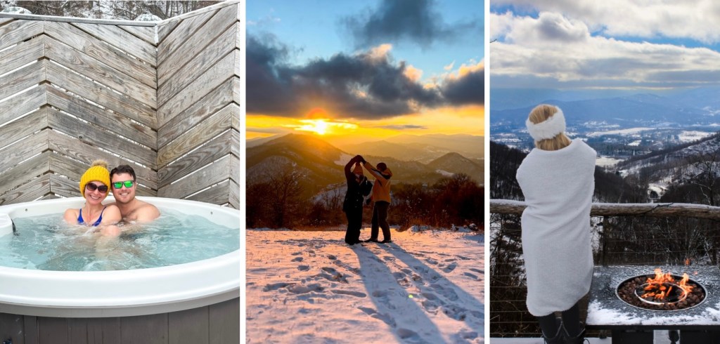 The next morning began with a dip in our private hot tub and coffee by the patios outdoor gas fire table as the sun rose. It was a lazy day of s’mores, relaxing, and snuggles before heading back out for another hike up Sunset Summit Trail. On our way up the mountain, we enjoyed seeing the other accommodations. The Ultra Luxe Dome is incredible, but the glass cabins had us very curious. As we walked, we realized the Sunset Summit Trail is not for the faint of heart. It is only 1 mile up and 1 mile back, but my heart was racing. When I say it was worth it though, I mean it. The sunset over the mountains was breathtaking. With 40 mile views in every direction, it was the perfect way to end the last night of our trip.