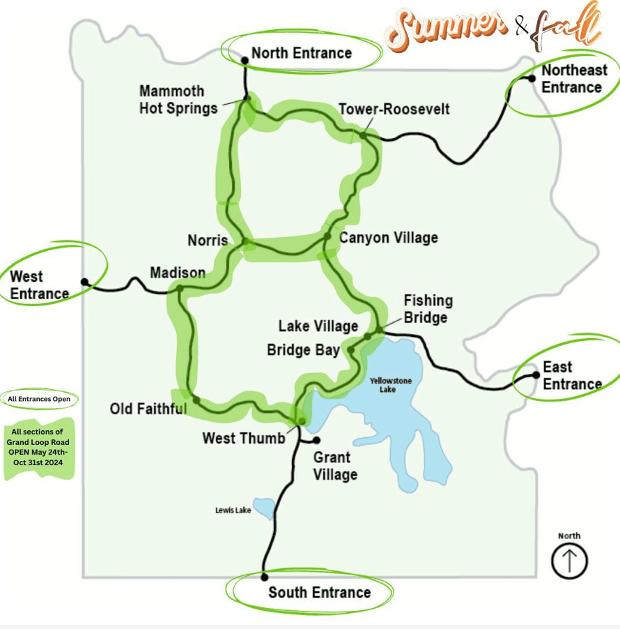 Before you begin, I recommend grabbing lots of snacks and packing a cooler. There are food and restroom stops along the Grand Loop Road, but they can be a bit stinky and a bit expensive. Cautionary note —watch for road closures. Yellowstones North and Northeast Entrances are both open year round, however, they were both closed on our visit and can close at any point due to weather. Best time to visit would be May-October to be safe.