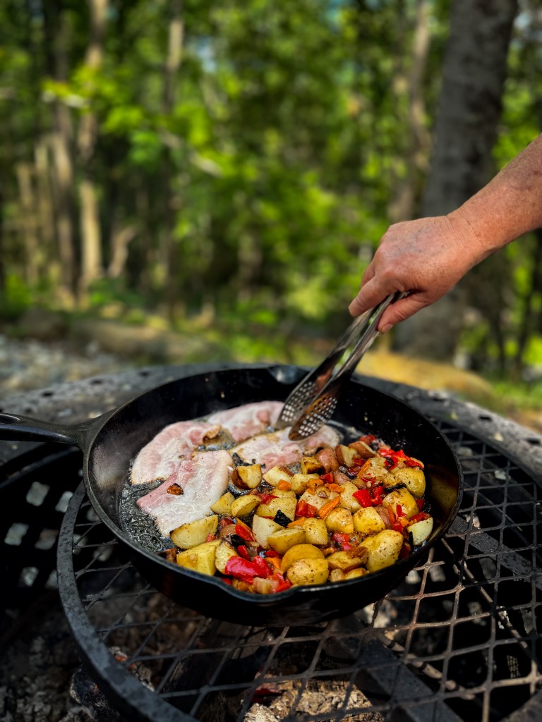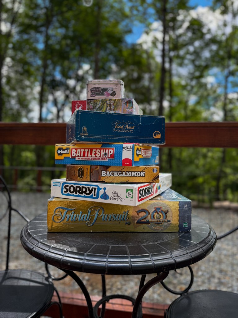 Couple other things that sets this glamping site apart is their unlimited amount of firewood, a cookstove top with dishes, pots and pans for a very small additional fee, and tons of games to choose from. It’s a tiny site, but with only two tents, this makes the perfect community getaway. However, don’t let the luxuries fool you, it is still glamping. You WILL find bugs in your tent on occasion, you WILL hear the birds chirping loudly through the canvas tent, and you WILL still be very immersed in nature…but that’s what it’s all about any way, right?!